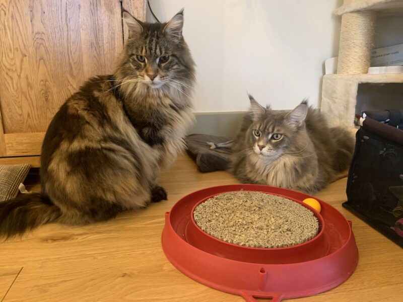 Here’s what a sample day might look like to satisfy a Maine Coon’s entertainment needs:
